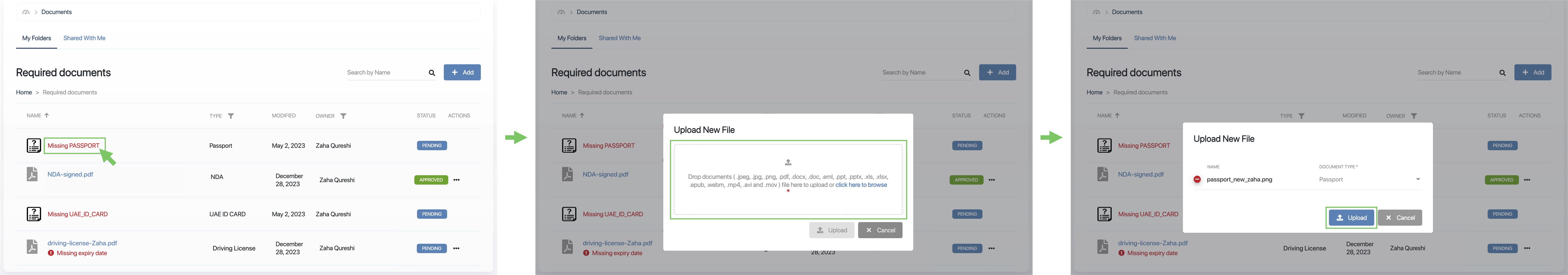 You can upload a document to the Required documents folder even if it isn't indicated as a missing document. To do this, you can do the following: