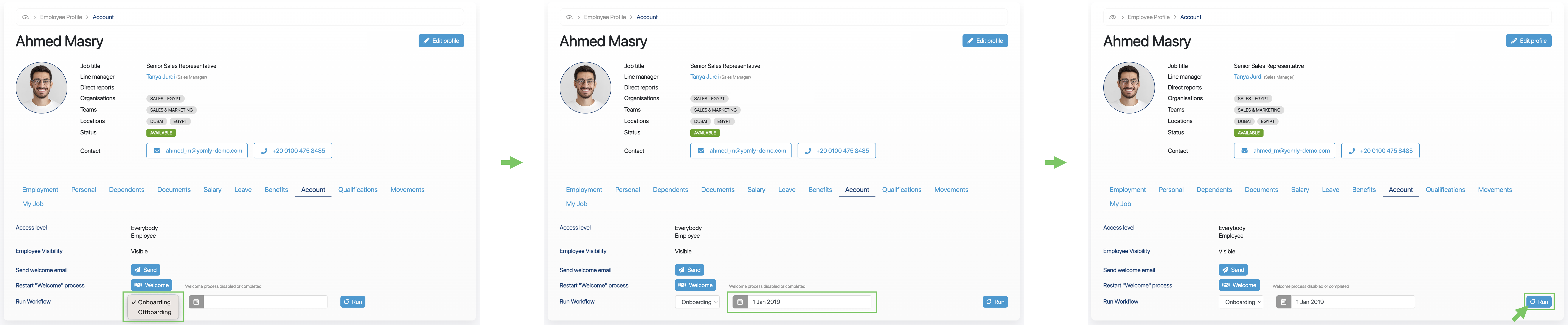 Based on administrative tasks performed for the employee on the platform, their employment status is automatically updated. |