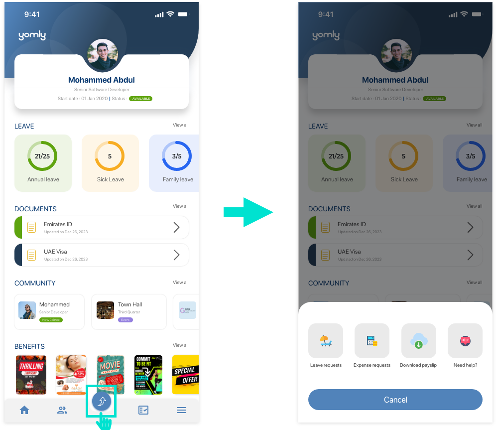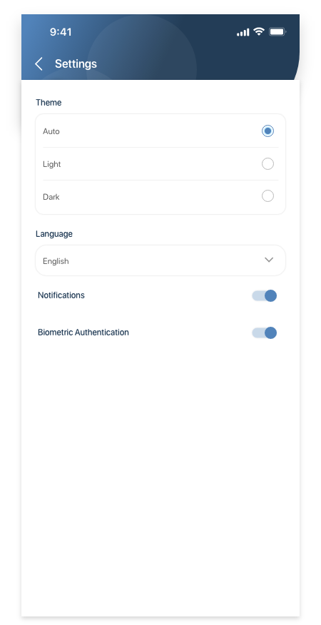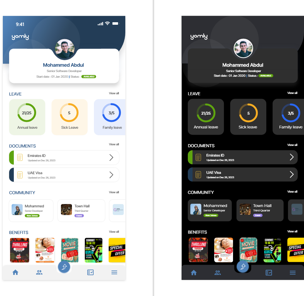 The new mobile app showcases our Yomly branding as part of its user interface (UI) design. Themes (display modes)You can work in Light or Dark theme or automatically switch between themes based on your mobile phone settings. You can select your preferred theme from the app settings. For more information |