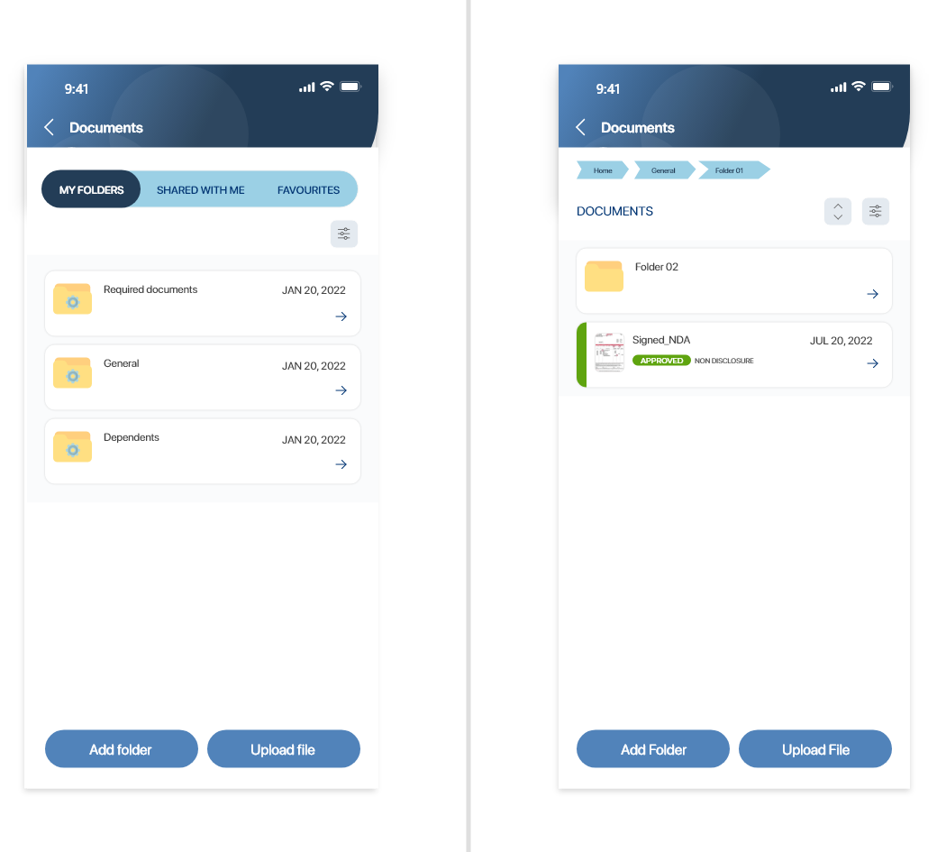 In Documents, your documents are organized in your folders, which are organized in the My Folders and Shared With Me tabs. You can do the following: