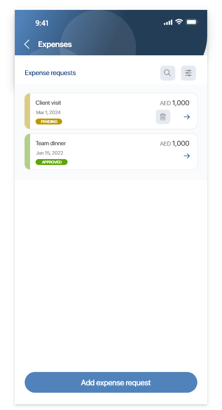 In Expenses, you can request expense reimbursements and manage expense requests. You can do the following:
