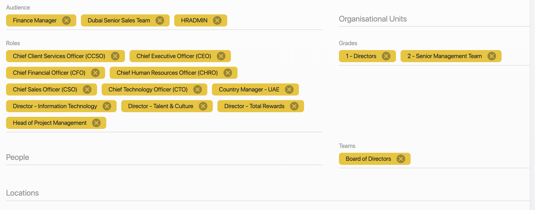 Audiences are custom user groups that enable you to granularly select employees in the following ways:
