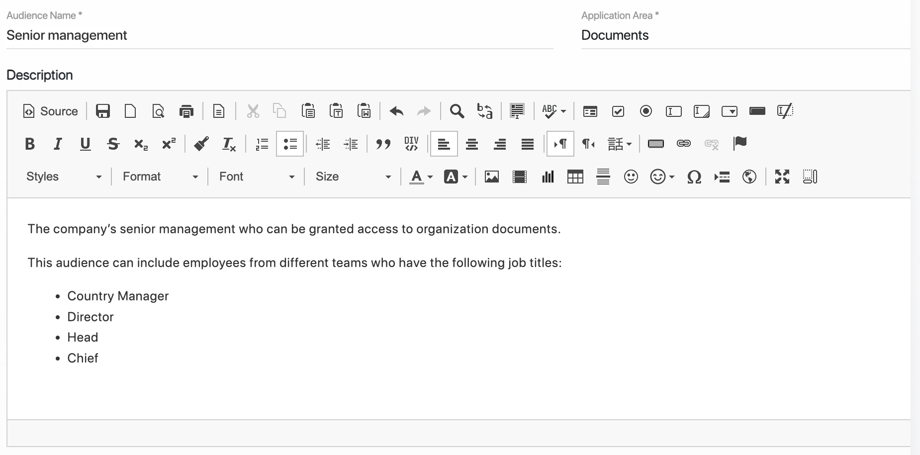 If you do not configure any audience, the document is set up as a required document for all employees.