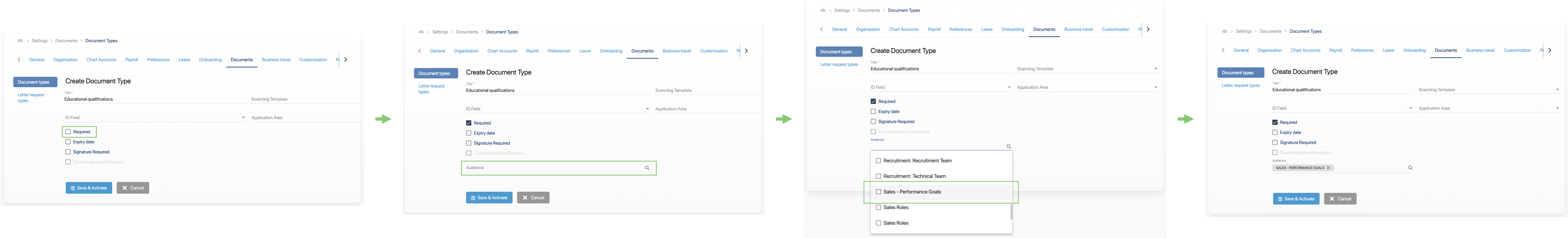You can mark a document as required for only specific audiences of employees instead of all employees. To do this, when creating or editing the document type, do the following: