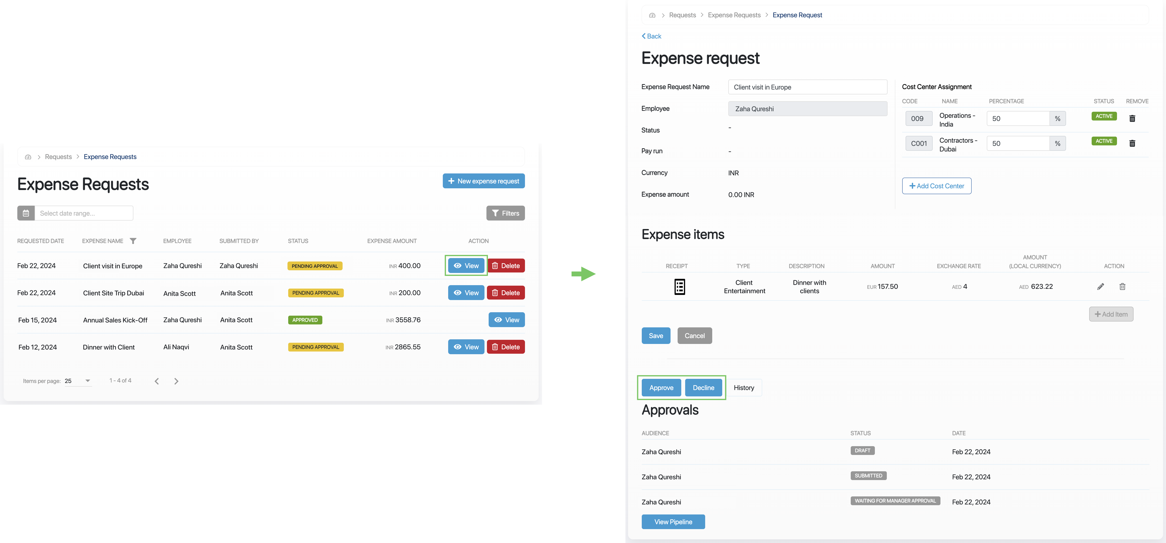 In every organization, a customizable pipeline governs the expense request approval process.
