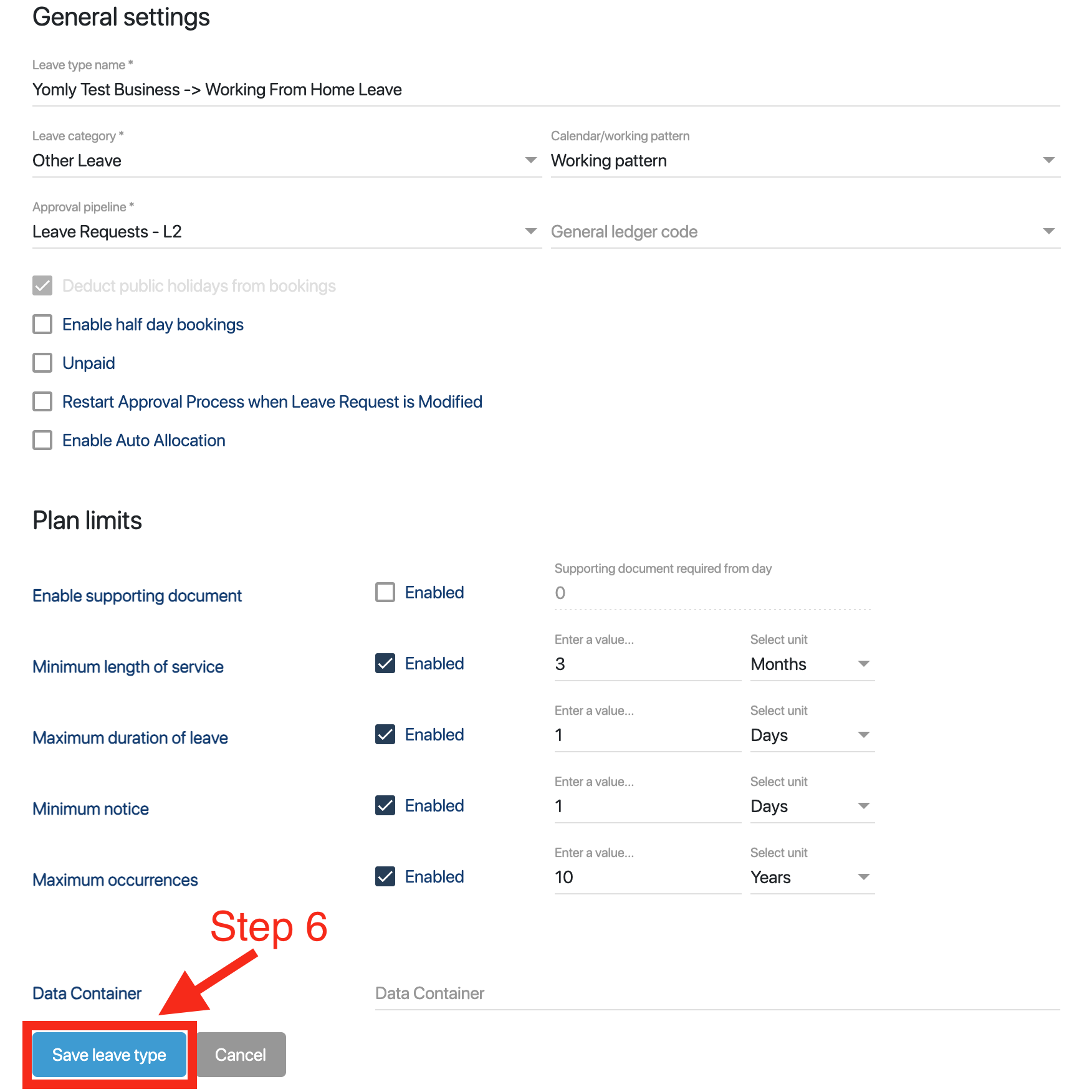 This article demonstrates how to limit the number of days a leave type can be used (example: Work from home leave type.)