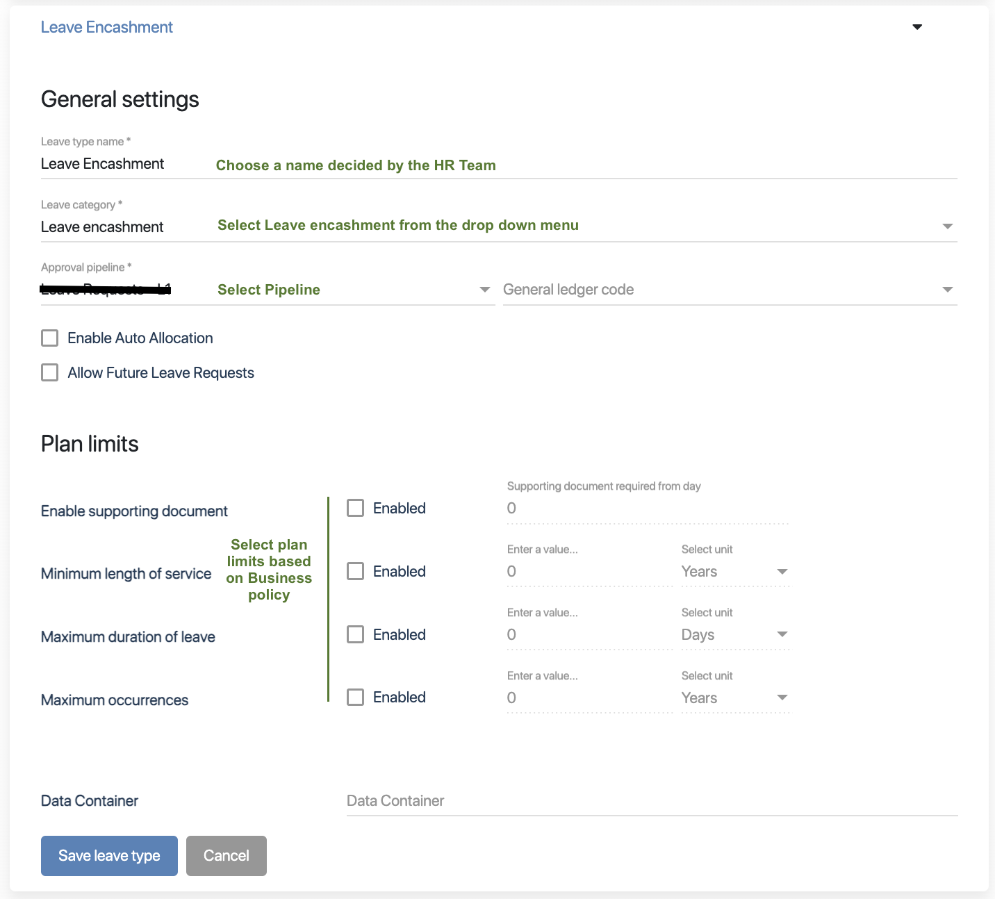 If you wish to create a new pipeline specifically for Leave Encashment, please contact your Account Manager for guidance.