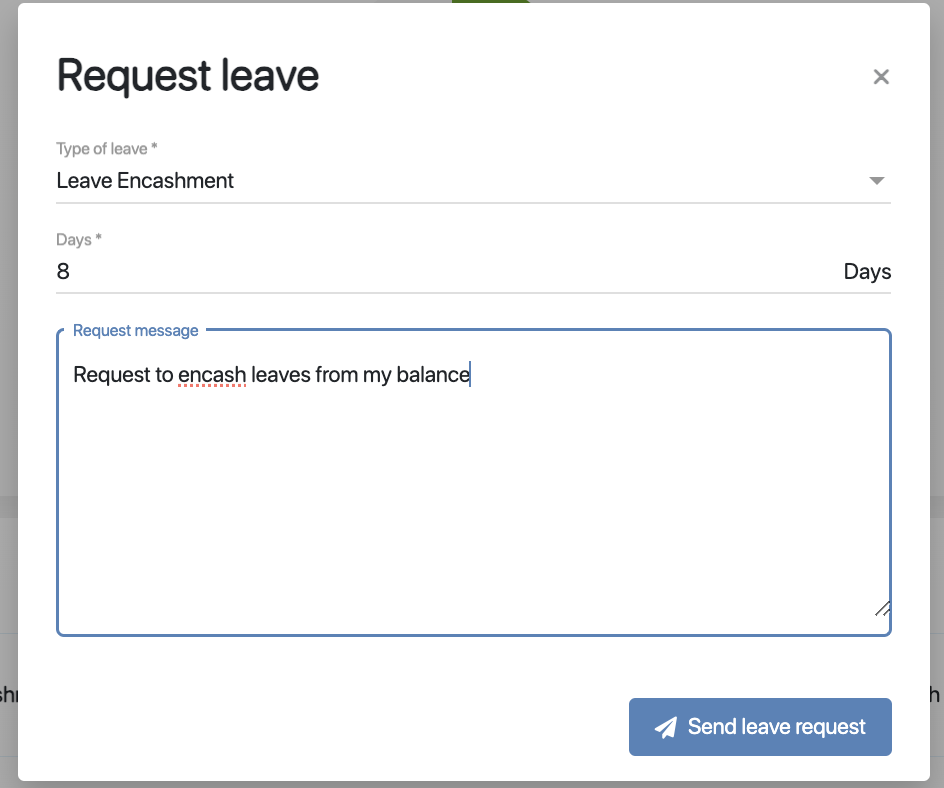 Once the request is approved, the encashment amount will automatically be included in the next payroll cycle.