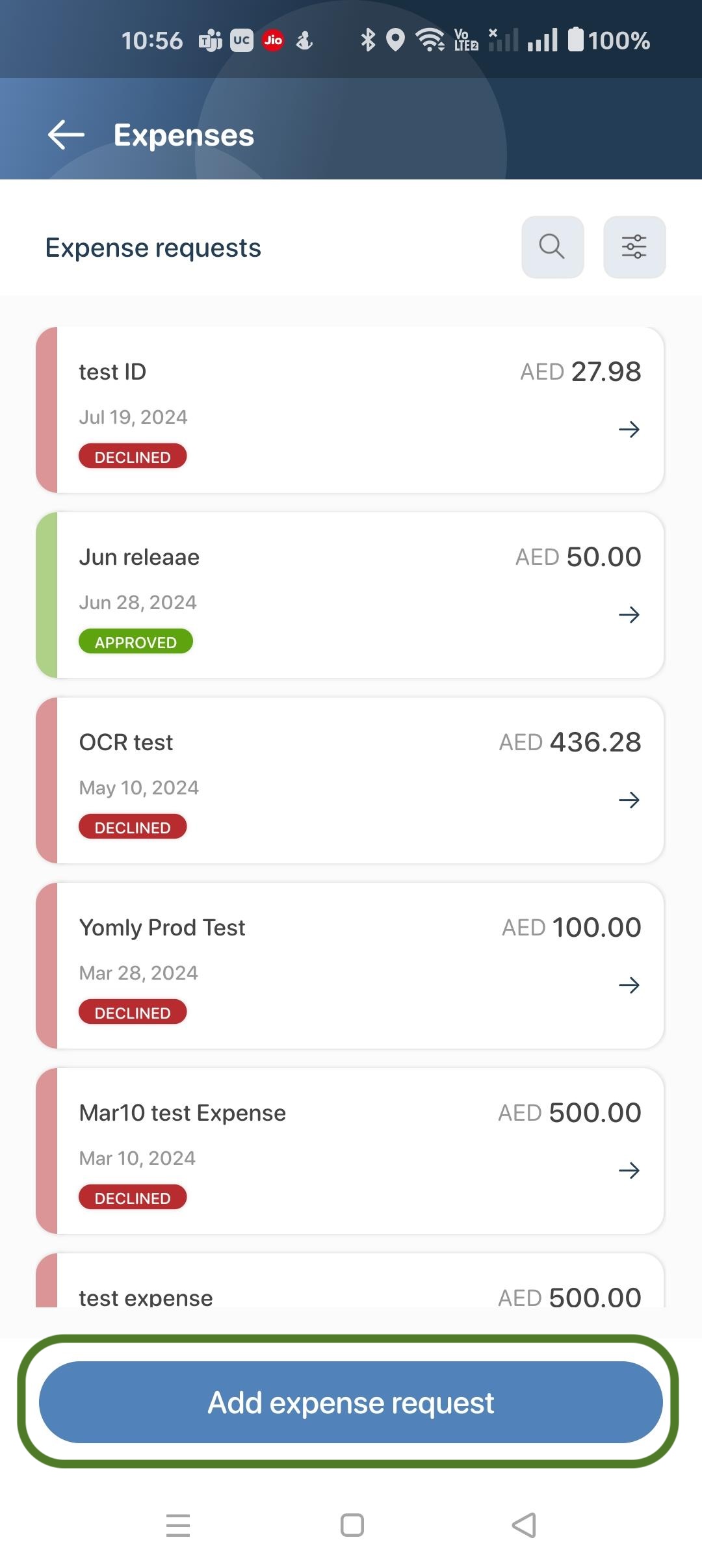 The Yomly Mobile App allows you to raise Expense Requests in the same way as the web application.