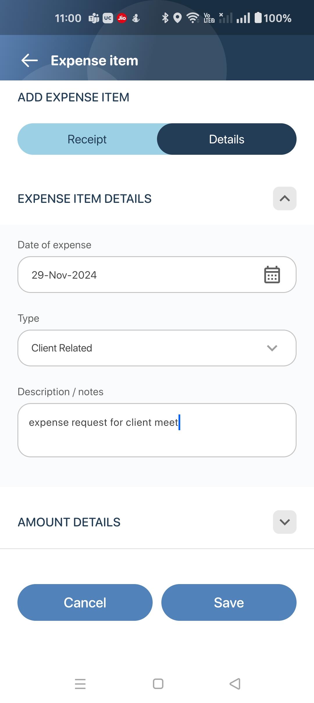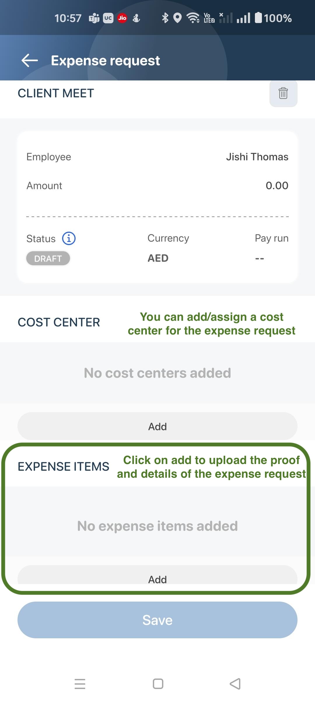 You can add multiple expense items under the same Expense Request by repeating the above steps.
