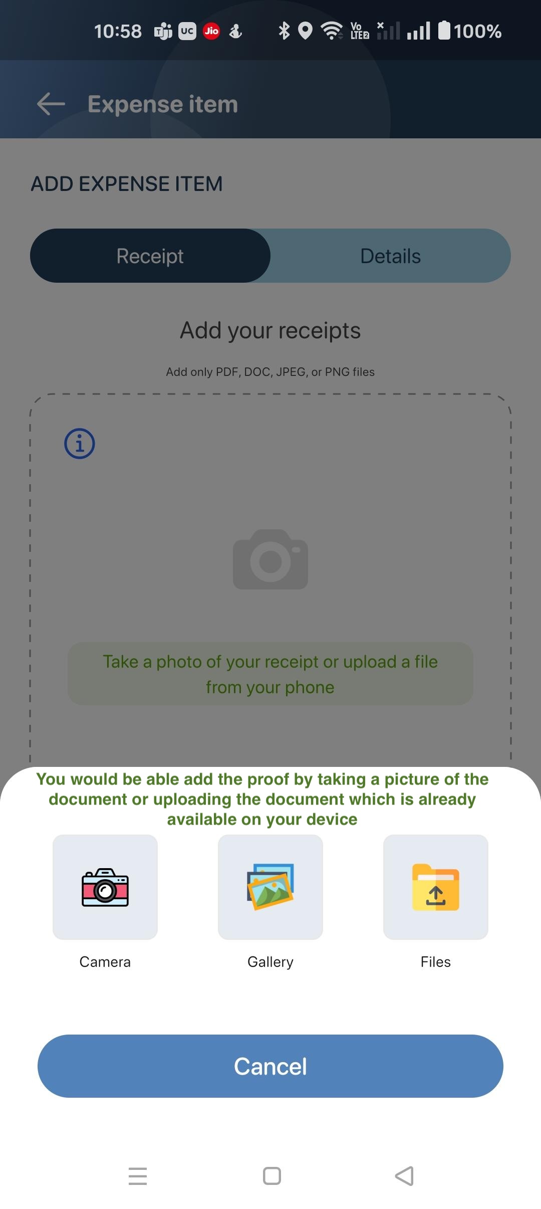 The file can be uploaded directly from your Camera, Gallery, or Files as well.