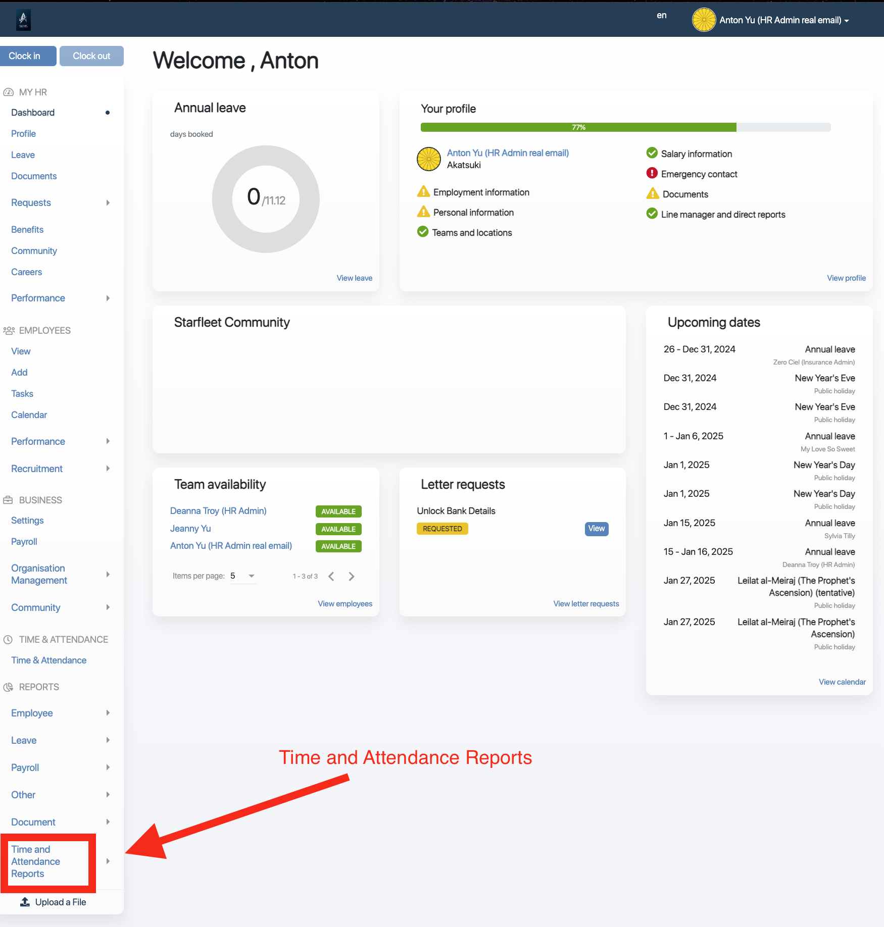 - Click on Time and Attendance reports under reports.
