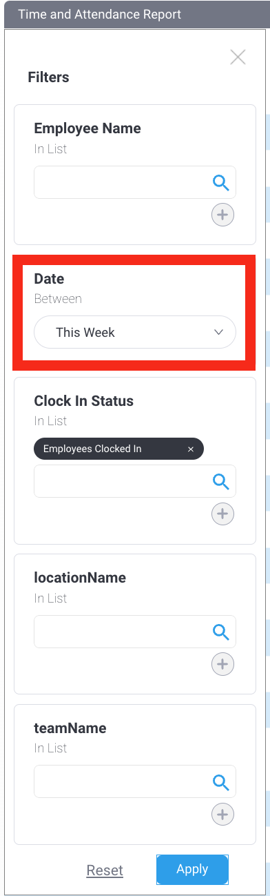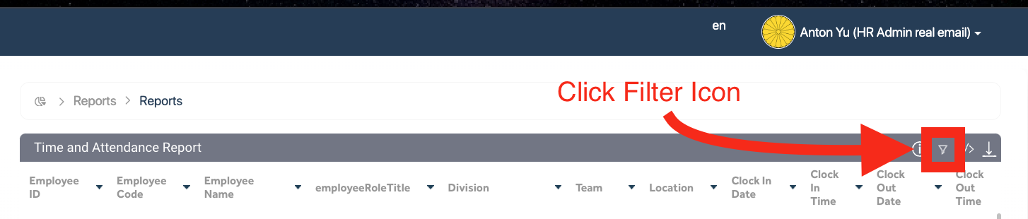 - In Clocking Report, click on the Filter icon.