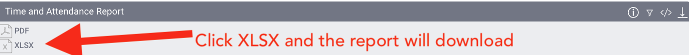 - Once the report loads with the filtered data, you can click the download icon and select XLSX to download the file.