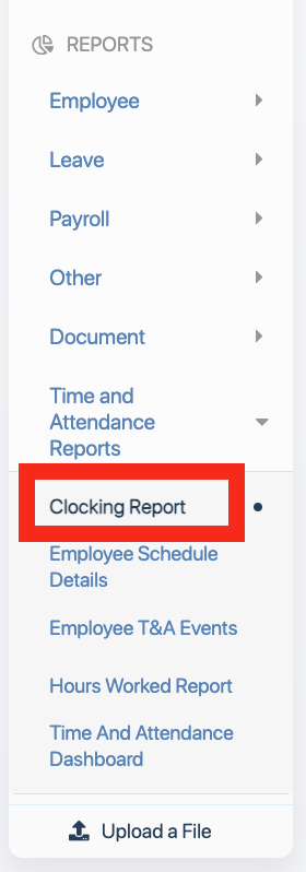 - In Time and Attendance Reports drop down list, click on Clocking Report.