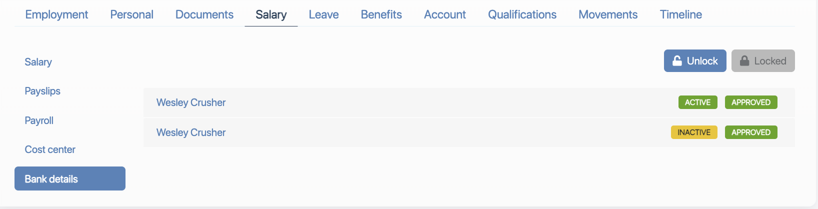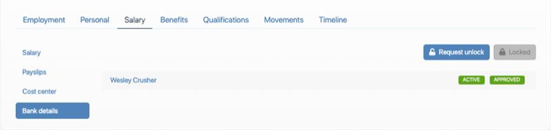If an employee’s bank account is locked, they will not be able to edit it directly.