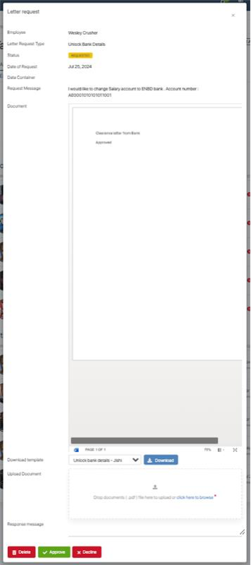 Any new or modified bank details are not auto-approved and must be approved by the HR Admin.