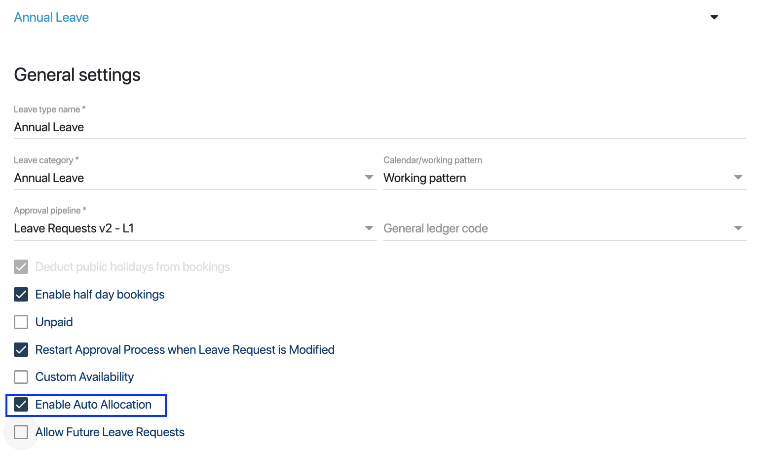 ✅ Once enabled, from the start of the next leave year cycle, all employees with this leave type will automatically receive their Default Annual Allocation without requiring manual action.