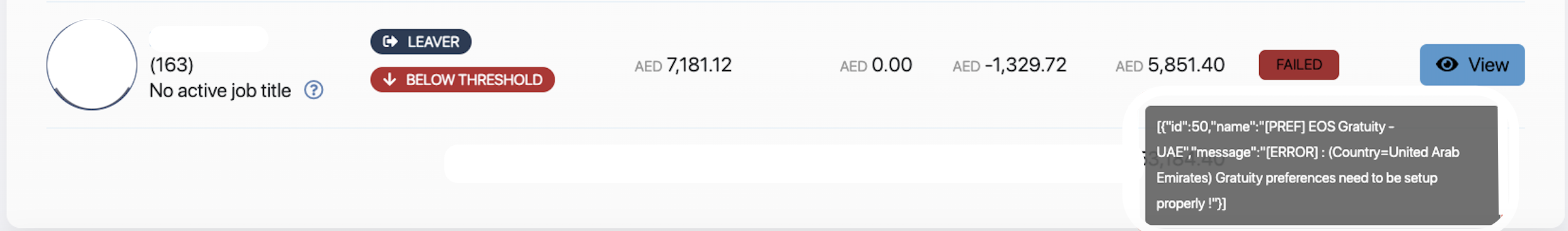 A payrun failure indicates that at least one employee within the payrun has encountered an error. Follow the steps below to identify the affected employee and the cause of the failure.