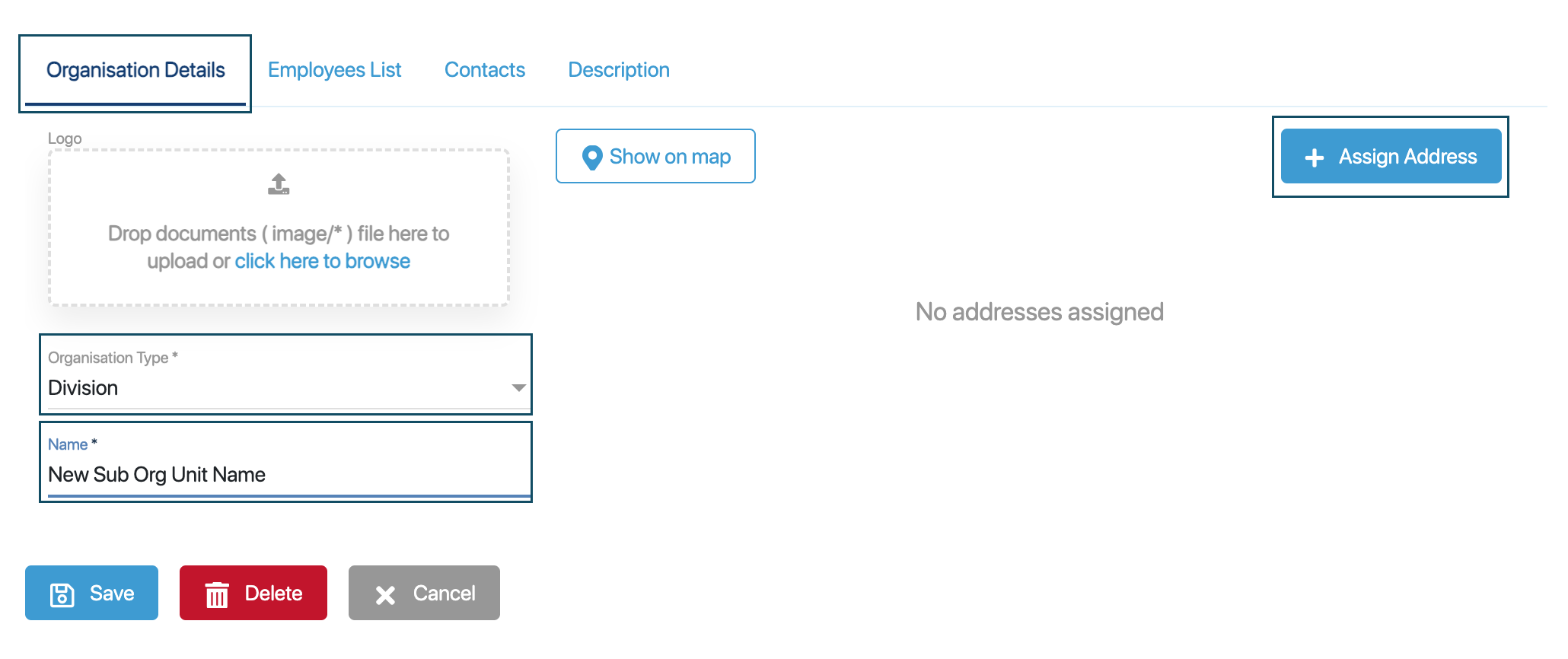 You will get an option to assign an Address, Logo and update the name of the Org Unit.