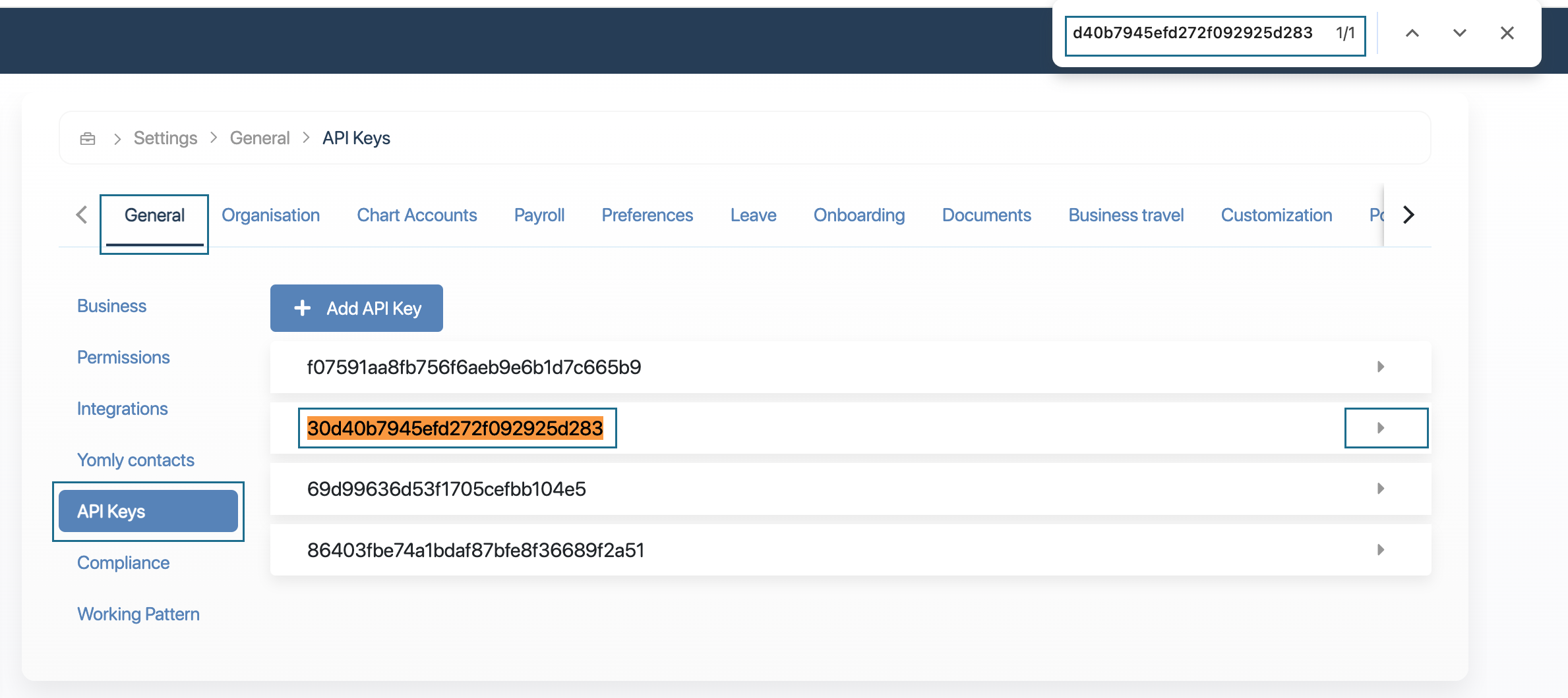 Use Ctrl + F (Windows) or Command + F (Mac) to search and paste the copied API Key Secret from the previous step.