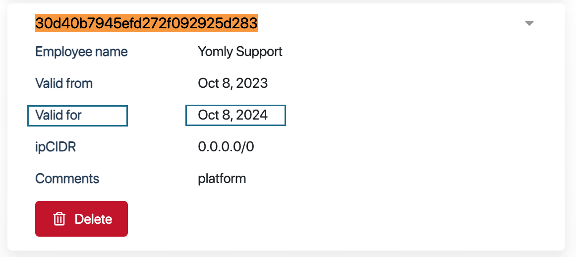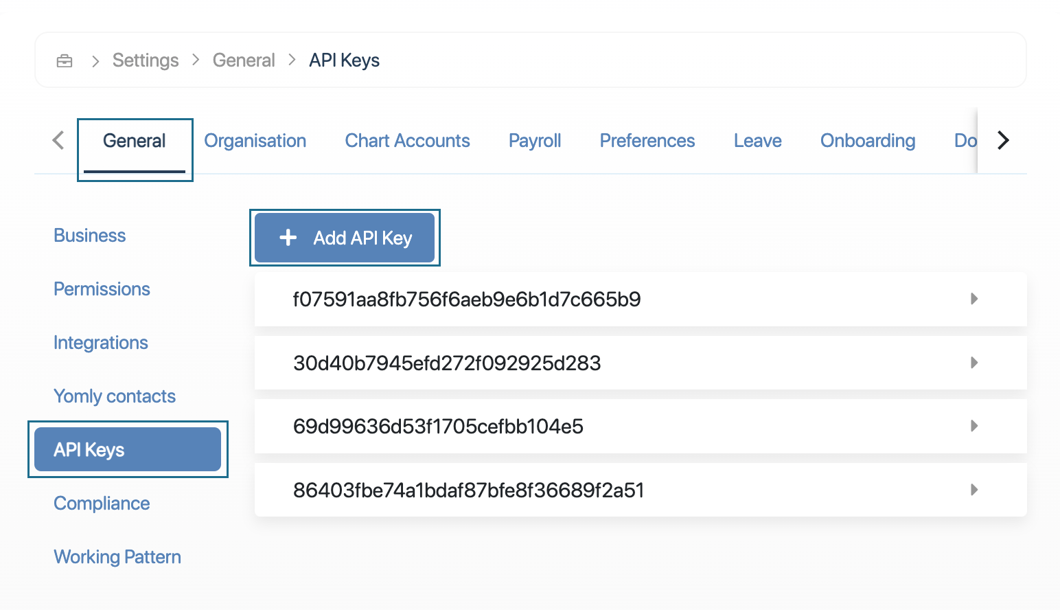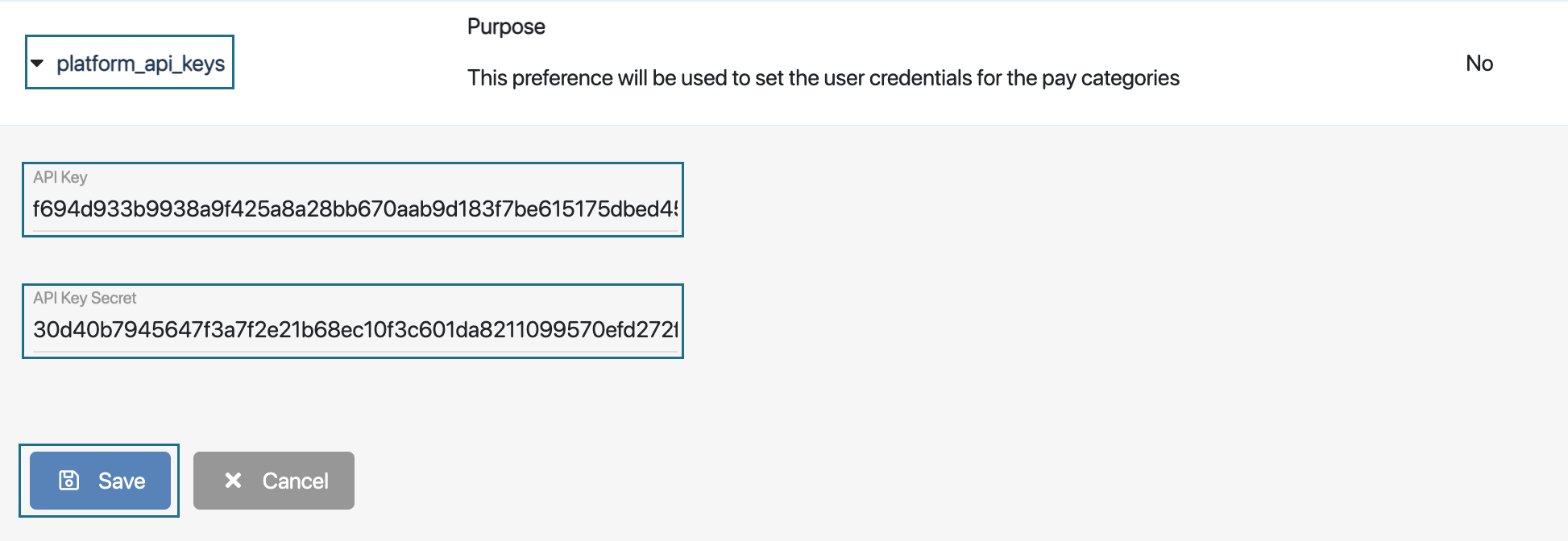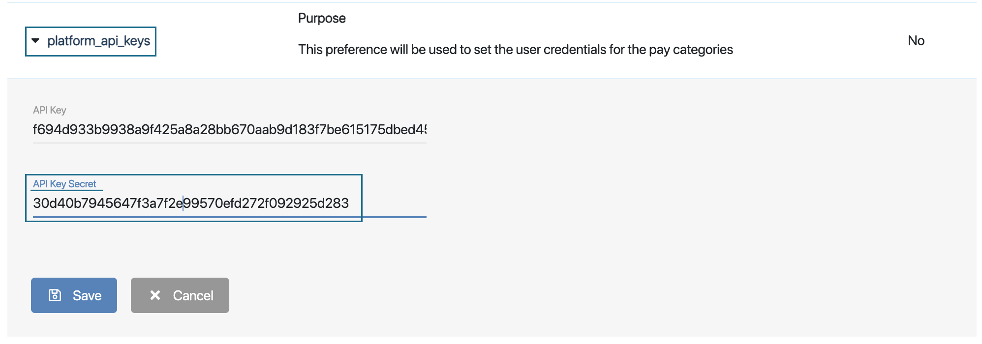 Copy the corresponding API Key Secret from the API Keys list and save it with the API Key.