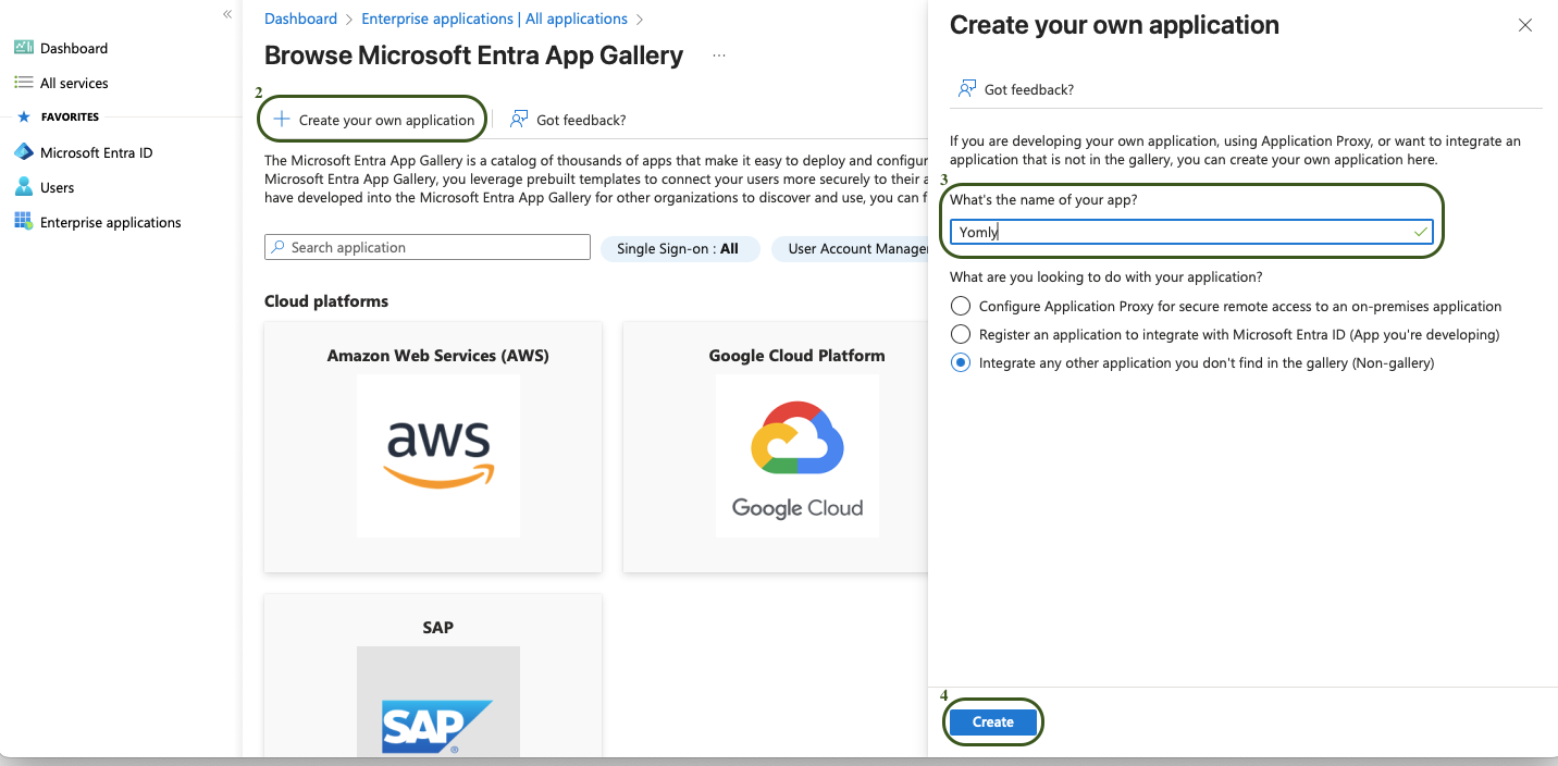 - Create an Azure AD Enterprise Non-Gallery Application by following these steps: