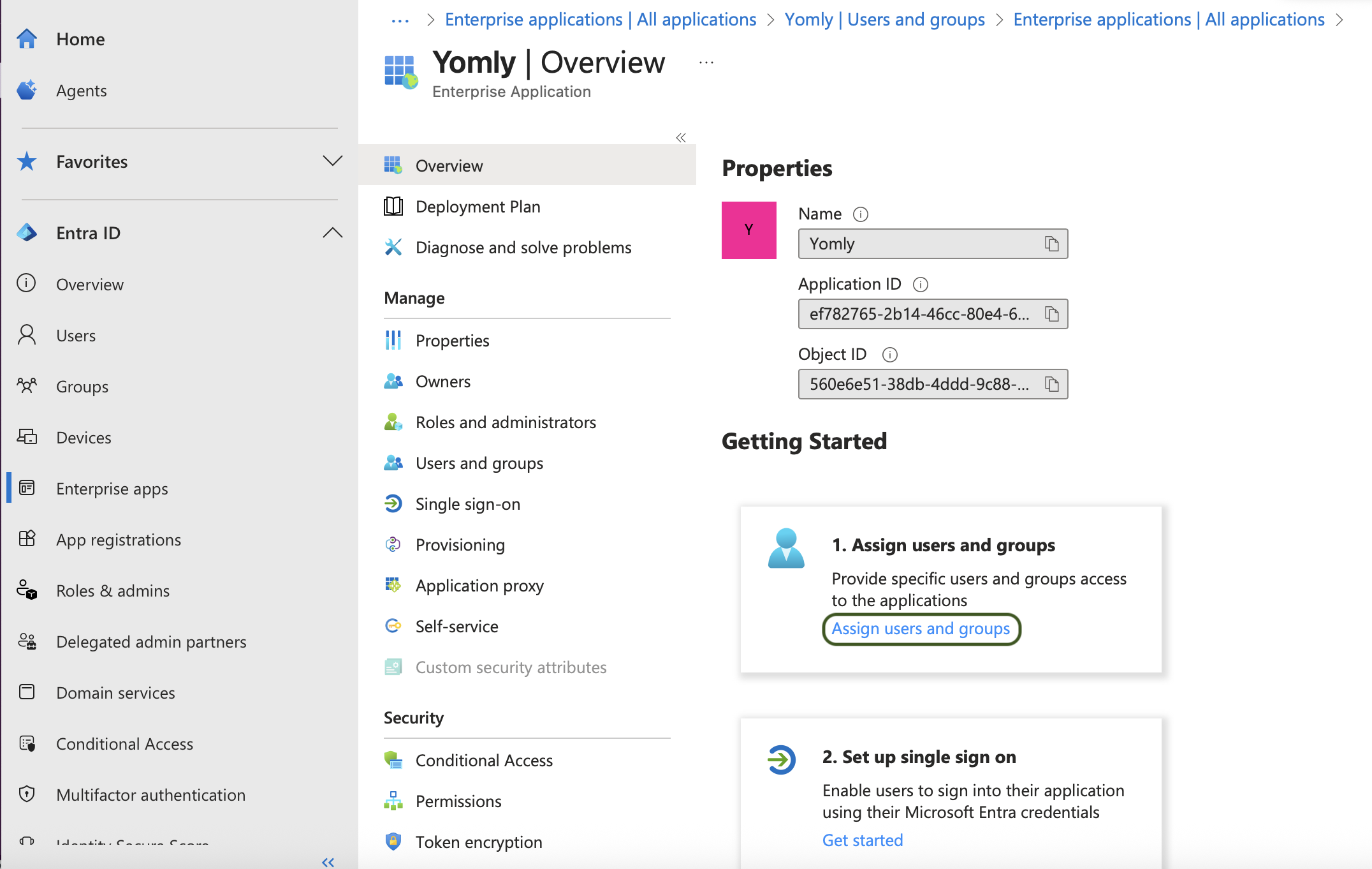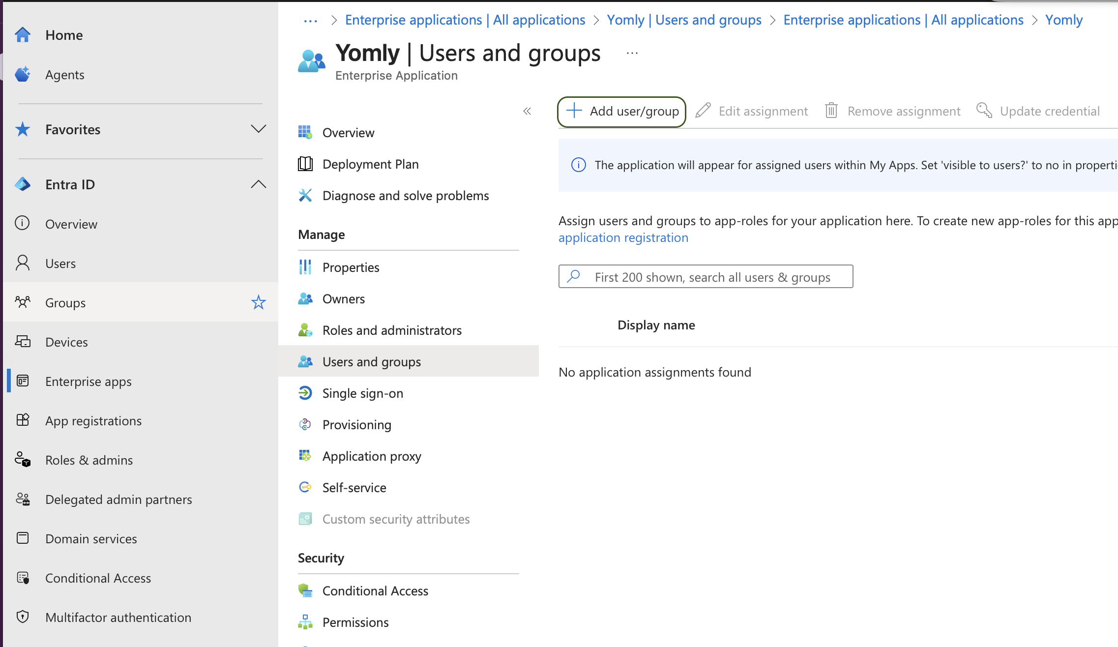 - "Assign users and groups" - "+ Add user/group" to update the users who should have access to the Yomly platform