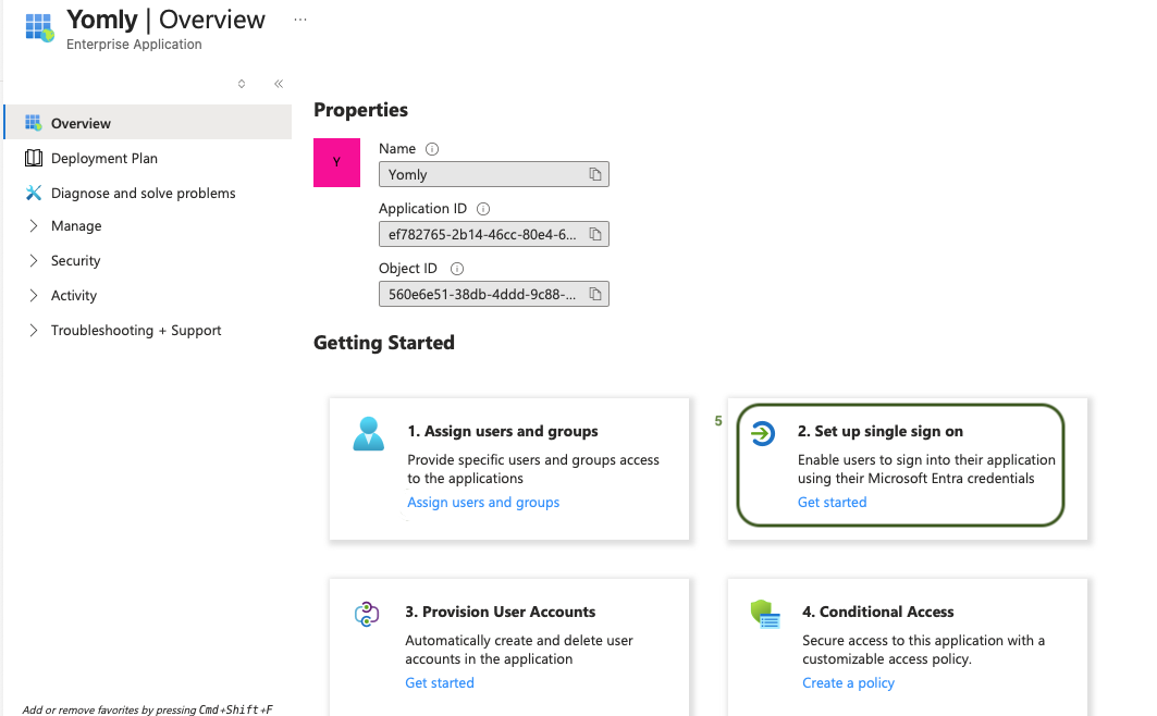 - After creating the application, go to "Set up single sign on" .