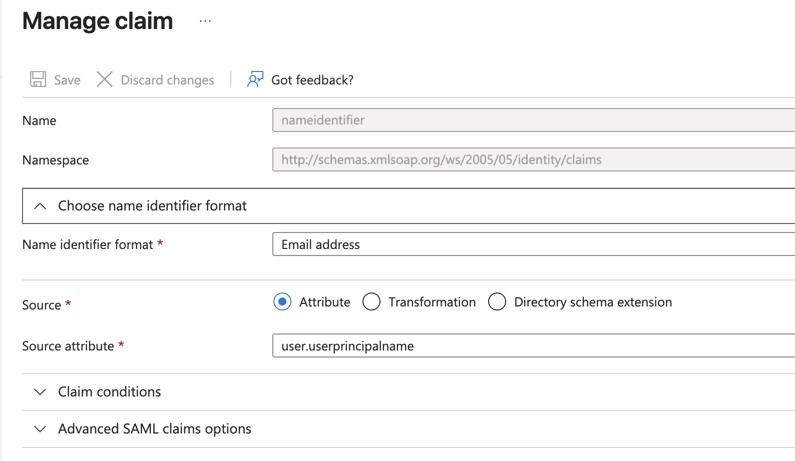 Source Attribute: user.userprincipalname