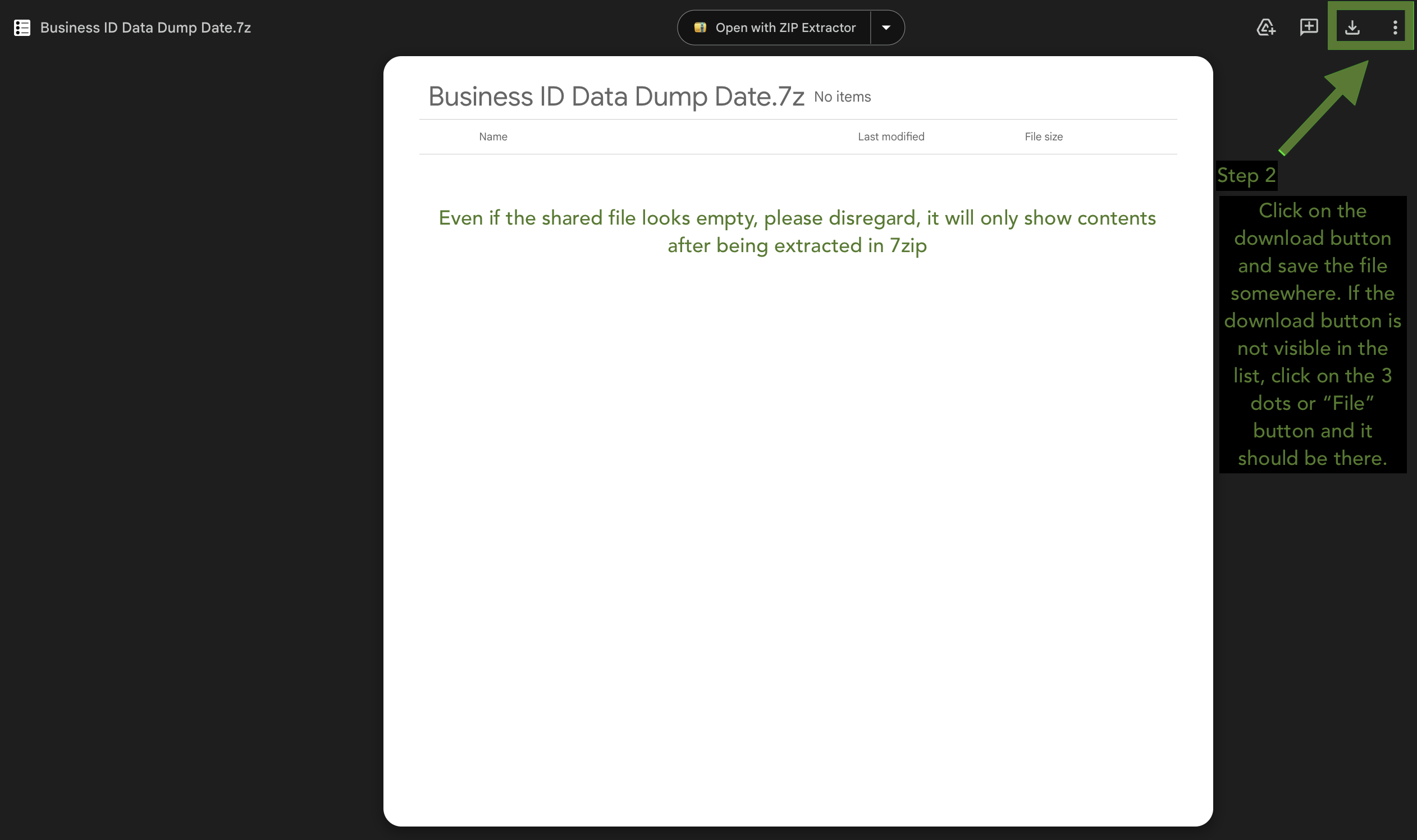 - Locate the data dump file you downloaded in Step 2. After selecting the Data Dump, open it and type the Password to extract the contents.