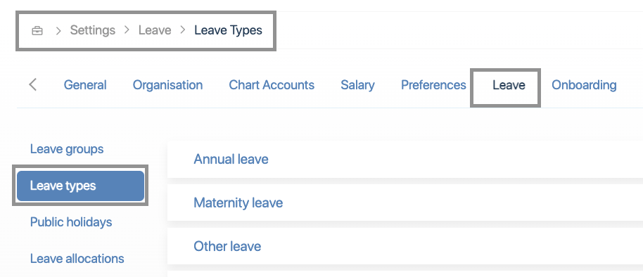 Within Settings, click on the Leave tab.