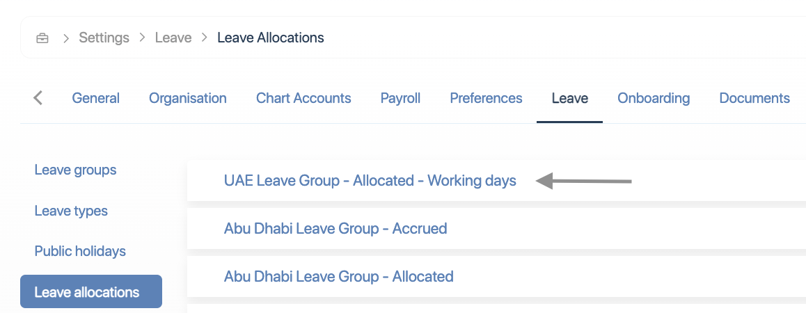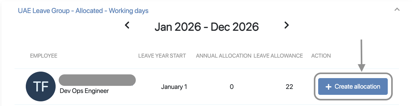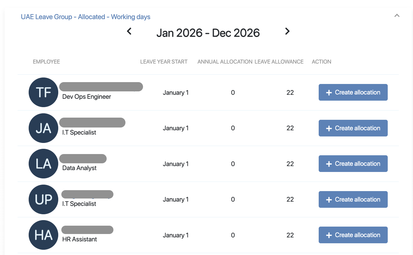 You will be directed to the Leave Allocations page where you can see all the Leave groups where you can allocate the leaves manually.