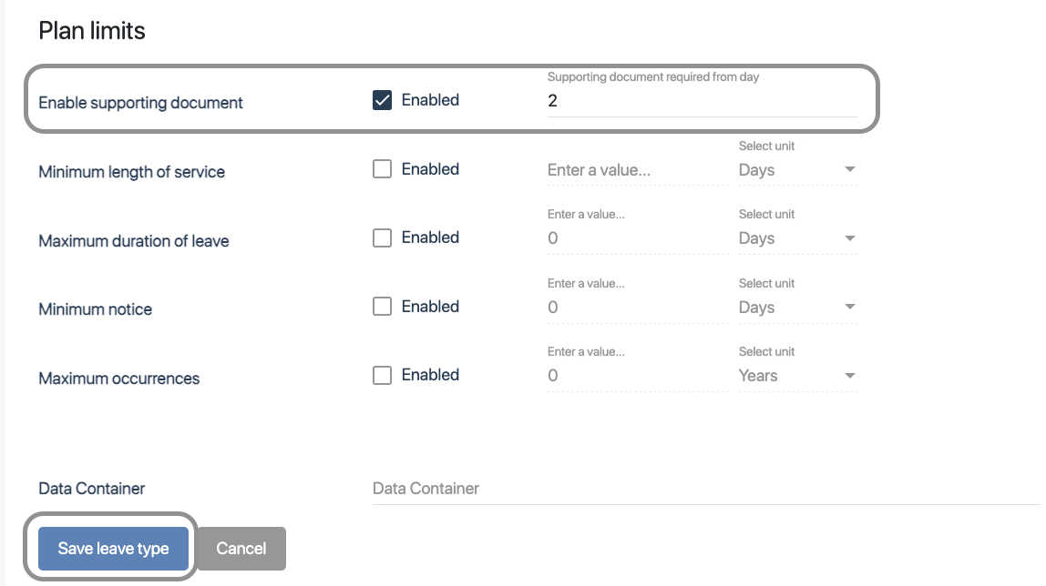 Enable Supporting Documents for a Leave Type