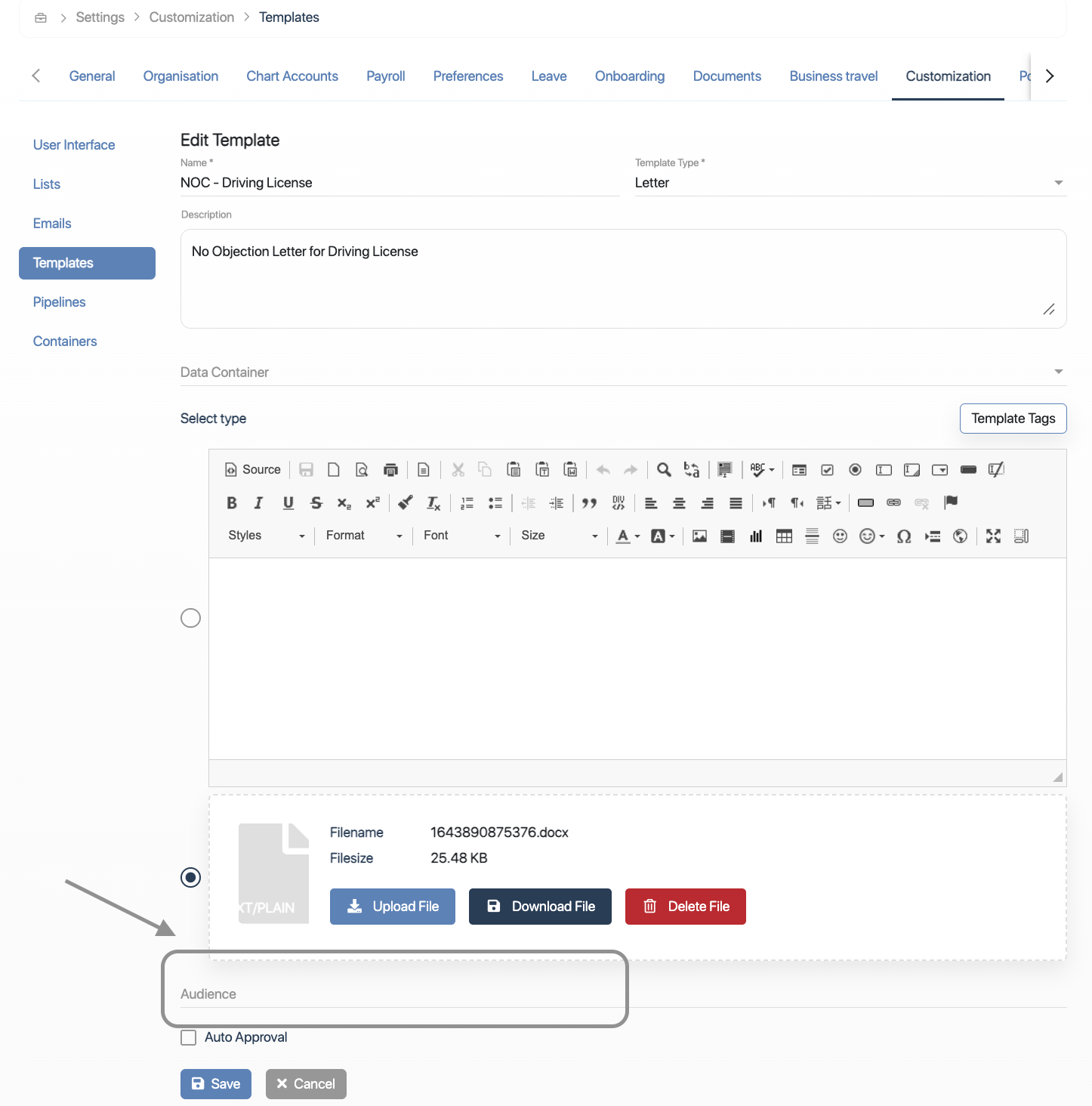 Once the letter template is selected, scroll to the Audience section at the bottom of letter template.