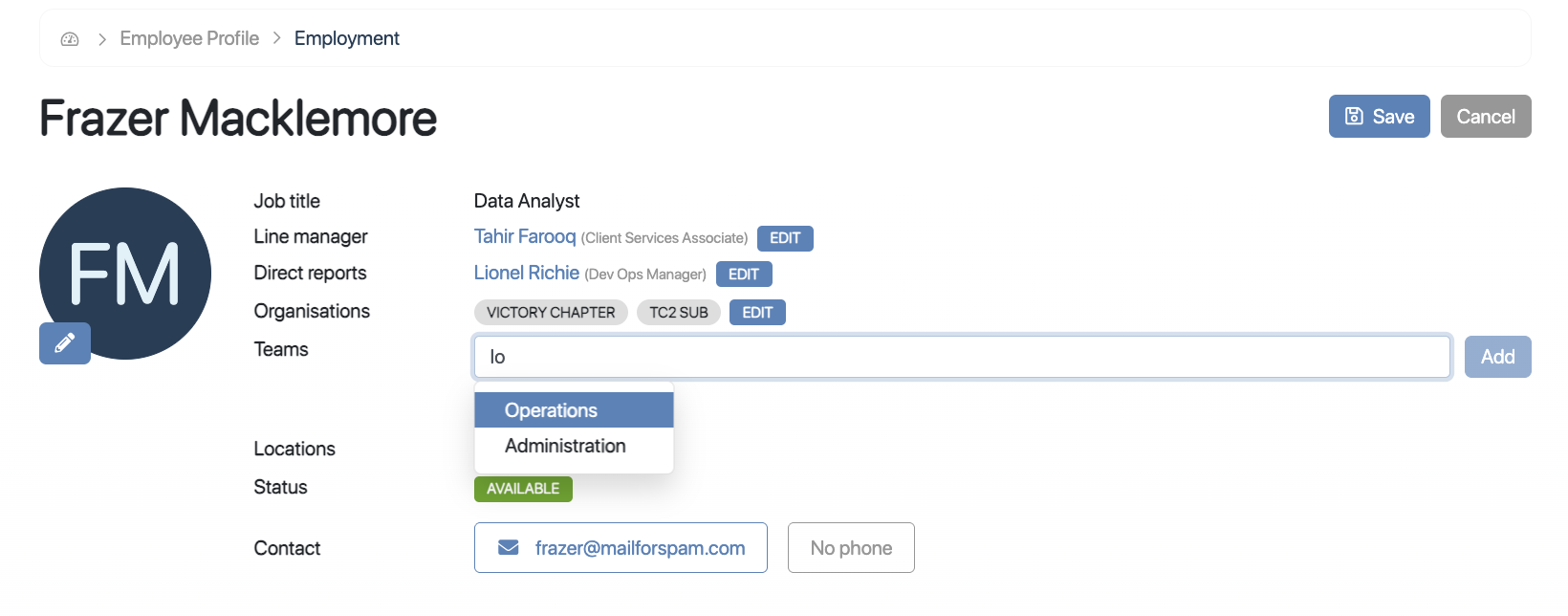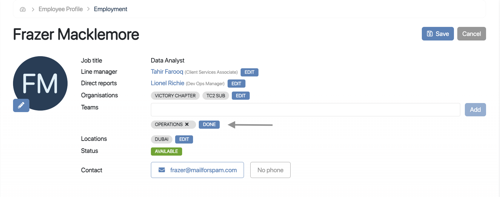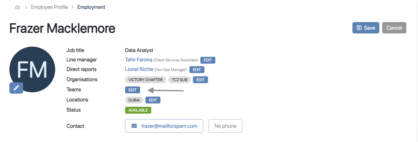 Step 2: Edit the Employee Profile and update the Team