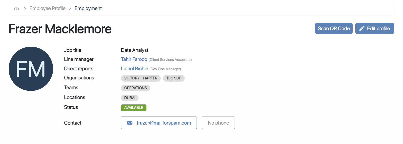 Main Menu → Employees → Employee Profile