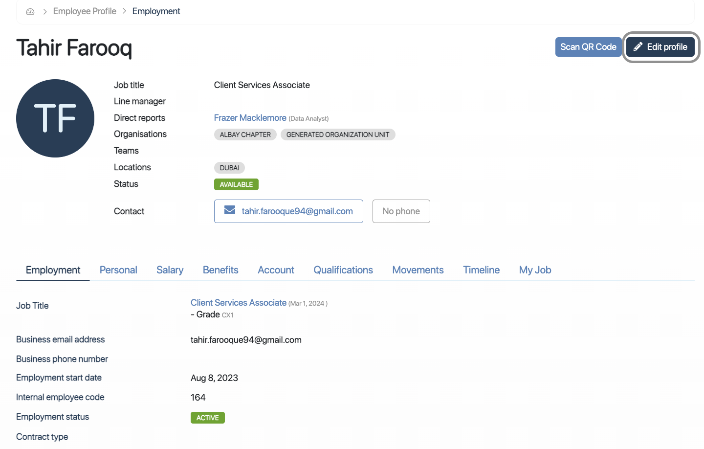 Navigate to Main Menu → View → Employee Profile.