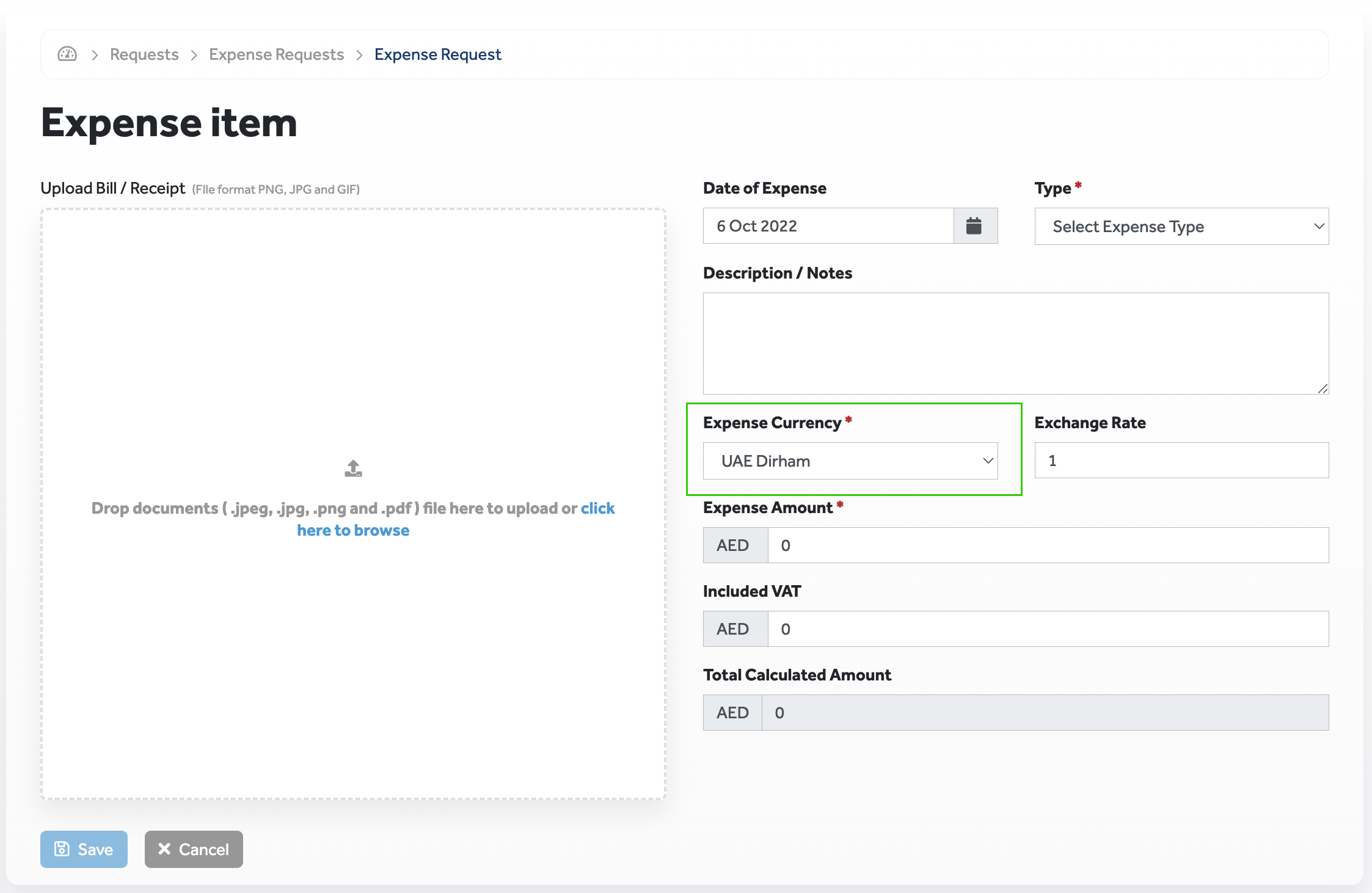 Expenses has a built in calculator that automatically converts your expense amount based on the default or specified exchange rate.