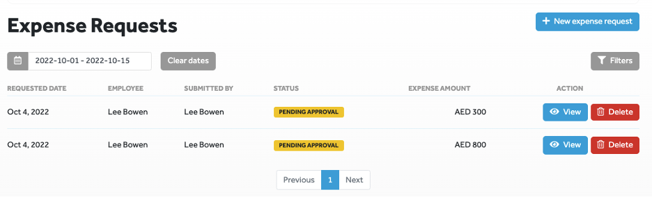 Can I filter my expense requests by date?