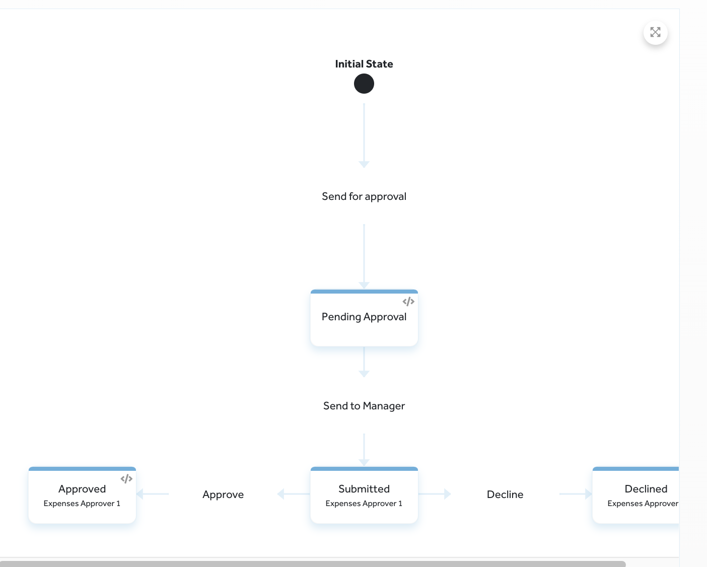 Consider the example of a basic pipeline with a single approver that governs expense reimbursements.