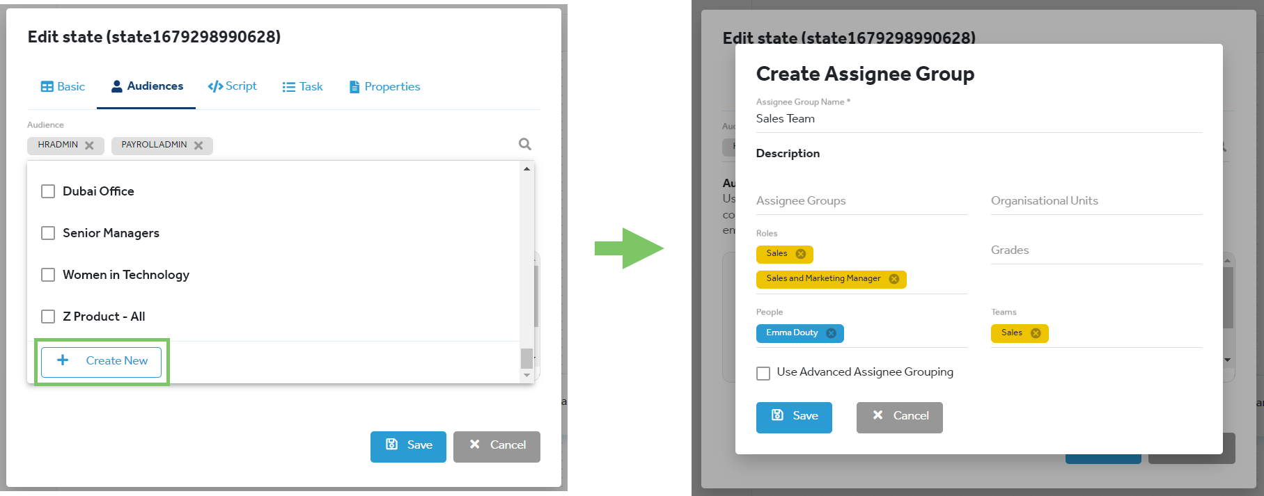 Remember, the audiences that you assign to a state represent the group of users who can send the object to the state.