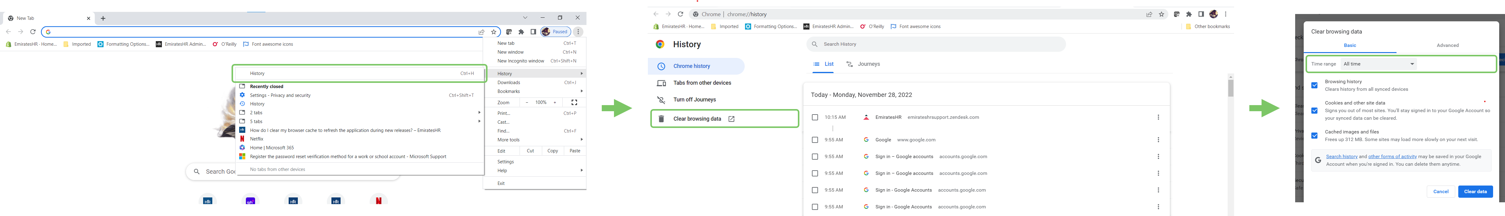 Here's a quick guide to clearing your browser history and cache when you need to refresh the application after a release. Depending on your browser, you can do the following: