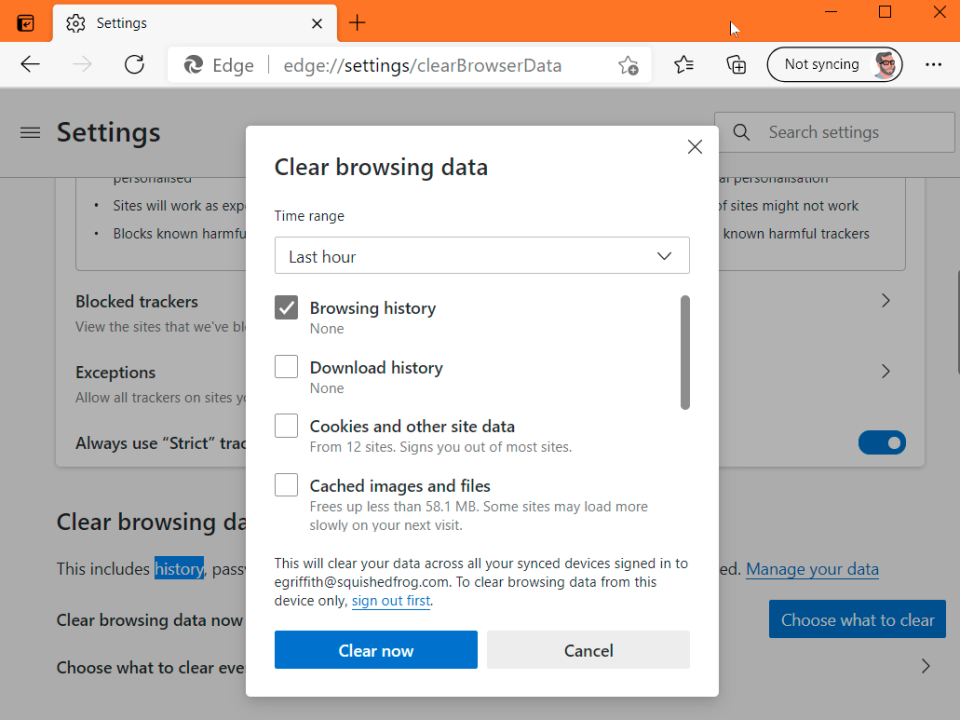 Click Clear now.
