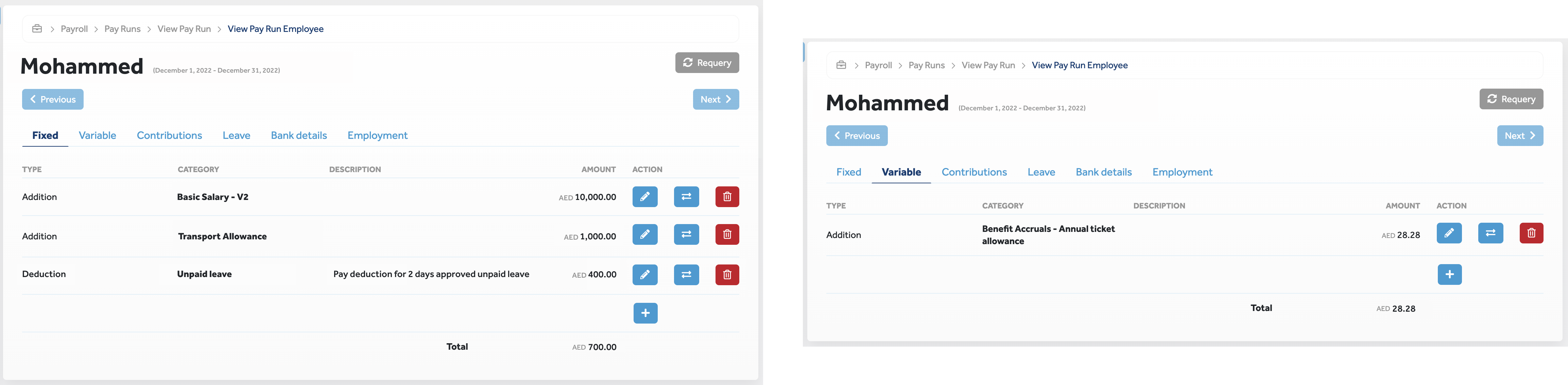 Go to the payroll profile of the employee for whom the Positive Values error was displayed. To do this, find the employee in the pay run, and in the Action column, click View.