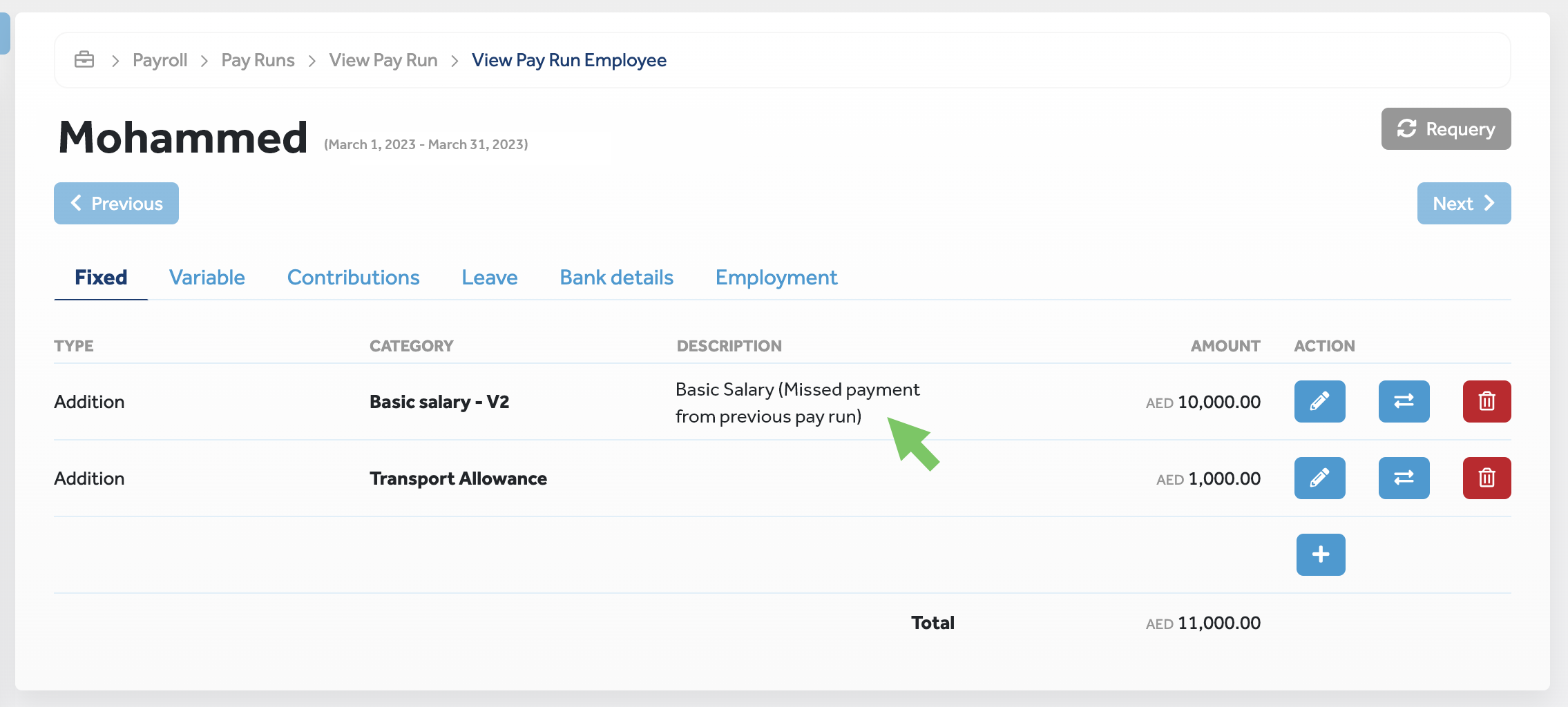 | Missed payment indicator in pay runs |