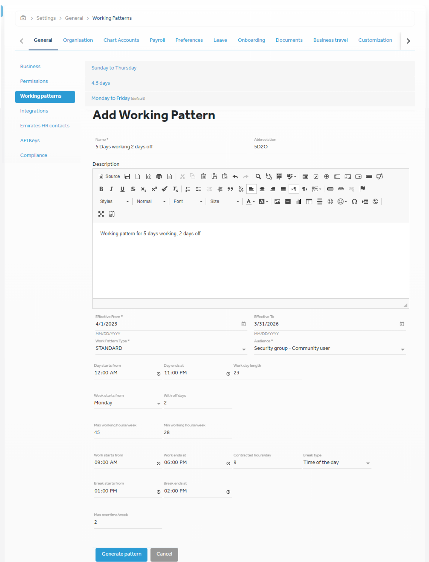 | Ability to dynamically calculate employee daily rates |