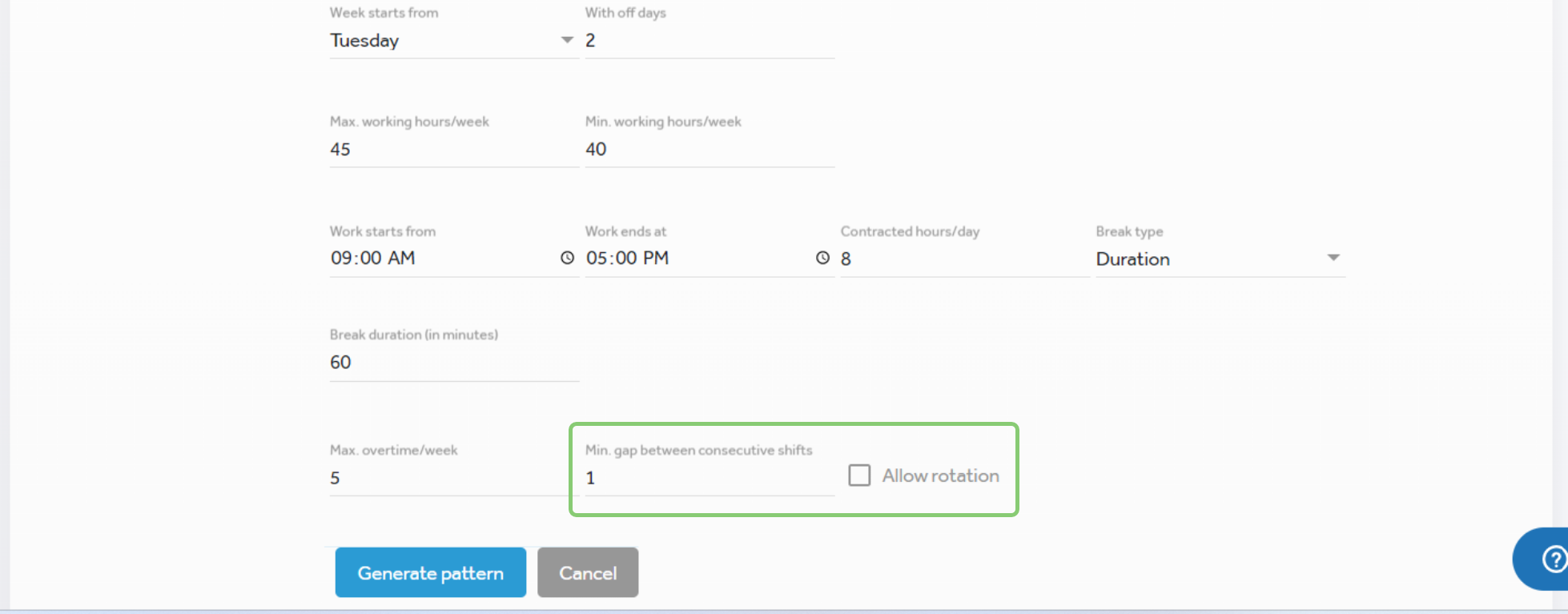 Creating working patternsWhen creating working patterns, you can configure the following new fields: