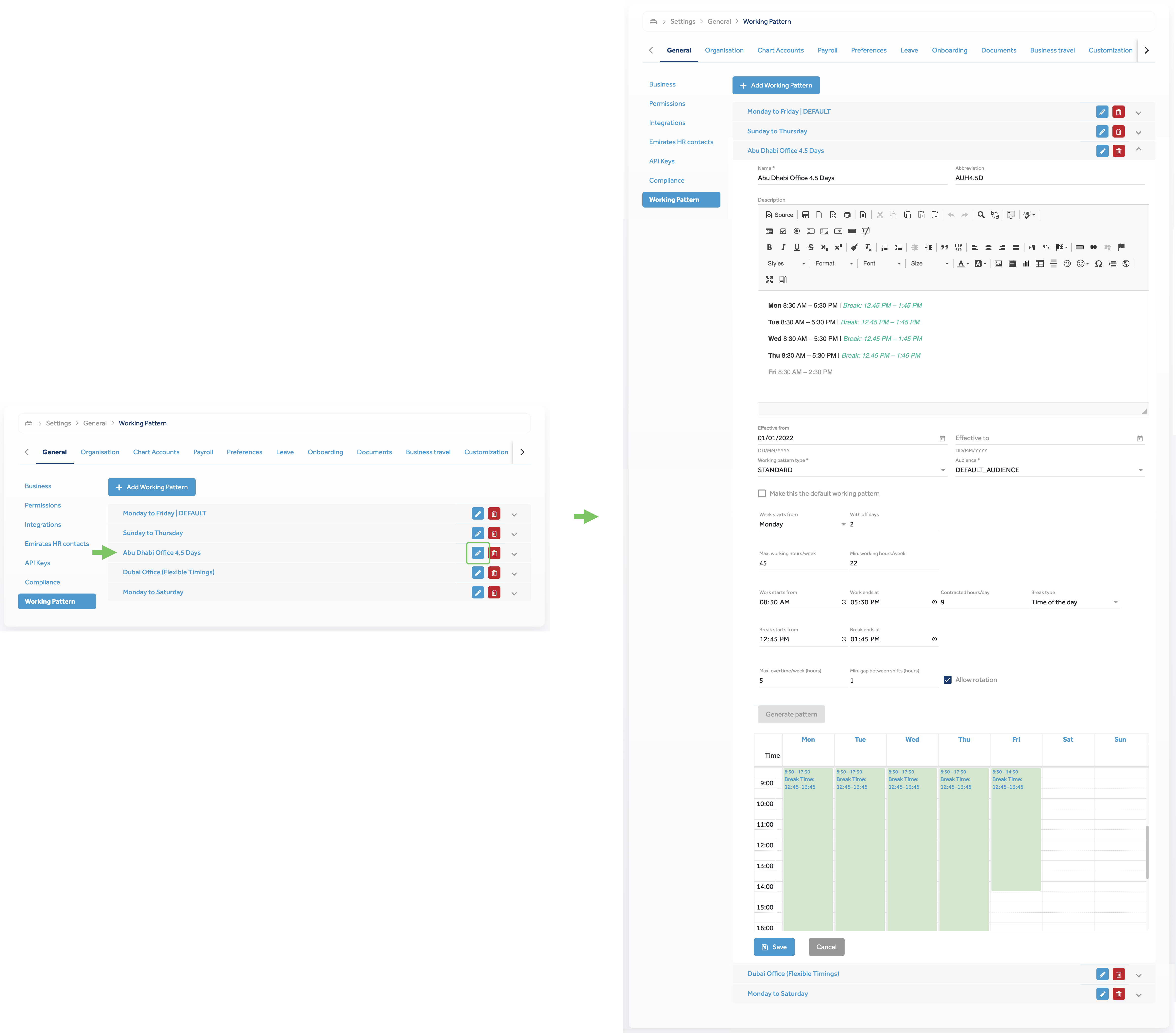 As a platform admin, you can create and configure working patterns based on any unique requirement of your organization.